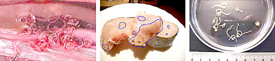 Xét nghiệm các thực phẩm cá trên một bàn sạch và sáng được sử dụng để chế biến hoặc xử lý giảm bớt số lượng giun trong một số cá trắng được biết là thường bị nhiễm. Phương pháp này không phải là hoàn toàn hiệu quả, và nó cũng không phải là đủ hiệu qủa loại bỏ một lượng lớn giun trong cá.
