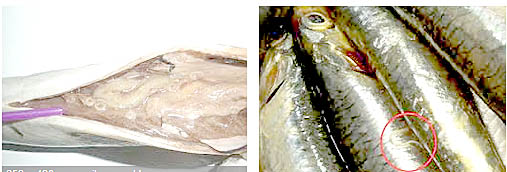 Trả lời: Cảm ơn câu hỏi của anh, chúng tôi xin phúc đáp về loài ký sinh trùng thường ký sinh trên các thực phẩm và hải sản đó là Anisakis, về mặt phân loại khoa học thuộc giới Animalia, ngành Nematoda, lớp Secernentea, bộ Ascaridida, họ Anisakidae, giống Anisakis và gồm có nhiều loài khác nhau như Anisakis pegreffii, A. physeteris, A. schupakovi, A. simplex, A. typica, A. ziphidarum. Anisakis simplex và một số giun liên quan, Pseudoterranova (Phocanema, Terranova) giun trong hải cẩu, Contracaecum spp, Hysterothylacium (Thynnascaris) spp. Là các giun tròn Anisakid tìm thấy cũng có nhiễm trên người do tiêu hóa các thực phẩm biển còn sống hoặc chưa nấu chín. Ngày nay, chỉ có A. simplex và P. decipiens là được báo cáo các ca bệnh nhiễm trên người ở vùng Bắc Mỹ.