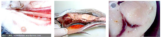 Các triệu chứng phân biệt khi nhiễm các loài ký sinh trùng bởi ăn cá sống: các ký sinh trùng sán lá gan nhỏ Clonorchis sinensis, Anisakis và sán dải cá Diphyllobothrium. Tất cả tác nhân này khi nhiễm đều có thể cho triệu chứng về đường tiêu hóa, nhưng phân biệt là rất khó.