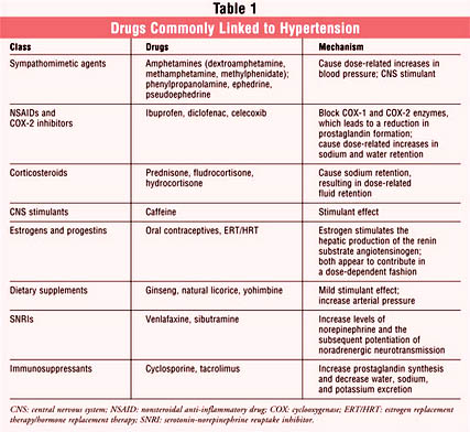 Các tài liệu hướng dẫn của Anh và Cộng đồng Châu Âu đã ghi những thuốc có thể làm tăng huyết áp. Dưới đây là danh mục một số thuốc có thể làm tăng huyết áp Các thuốc chống viêm không steroid, thuốc tránh thai hỗn hợp dùng đường uống, các thuốc corticosteroid, thuốc giống giao cảm, cocaine, amphetamine, erythropoietin, cyclosporine,….Nhiều thuốc làm một tỷ lệ đáng kể bệnh nhân tăng huyết áp đã có từ trước thêm nặng và một số khác làm những người có huyết áp bình thường trở thành THA.