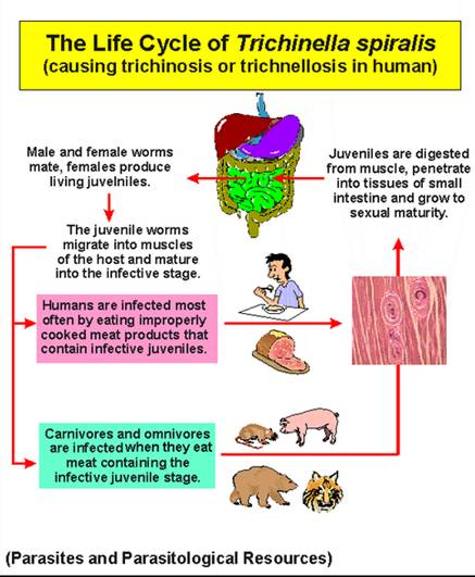 Trả lời: Rất cảm ơn về câu hỏi của bạn và câu hỏi này đồng thời được một bạn đọc tỉnh Khánh Hòa hỏi, nên chúng tôi kết hợp trả lời cho các bạn hiểu hơn về bệnh lý giun sán có thể lây truyền qua đường thức ăn này. Những người thường xuyên ăn nem chua, ăn gỏi lợn hoặc ăn thịt lợn nấu chưa chín, rất dễ mắc nhiễm ấu trùng giun xoắn Trichinella spiralis. Đồng thời chúng tôi muốn chia sẻ phần phúc đáp đầy đủ từ một đồng nghiệp trên báo như sau: