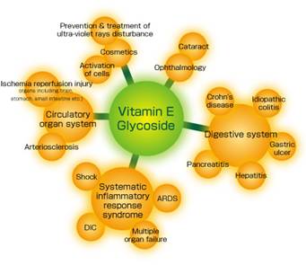 Vitamin E có nhiều tác dụng quan trọng, trong đó có tác dụng chống ôxy hóa bảo vệ màng tế bào khỏi sự tấn công của các gốc tự do, nhờ đó bảo vệ được tính toàn vẹn của màng tế bào. Đồng thời nó có tác dụng hiệp đồng với vitamin C, vitamin A, selen nhất là có tác dụng bảo vệ vitamin A không bị ôxy hóa.