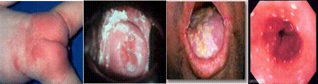 • Nhiễm trùng candida tại thực quản do lan từ miệng, gây khó khăn cho nhai nuốt;