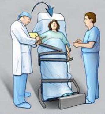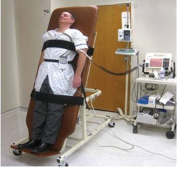 Hình 2. Bệnh nhân đang được thực hiện nghiệm pháp bàn nghiêng [7] |