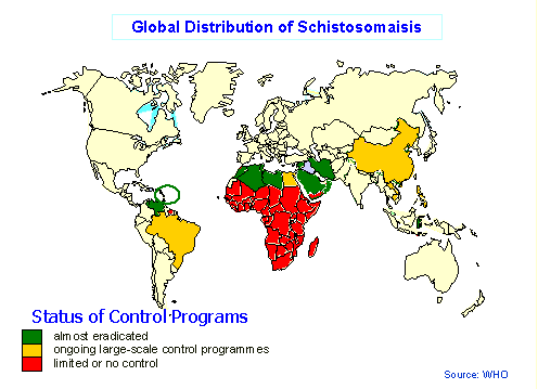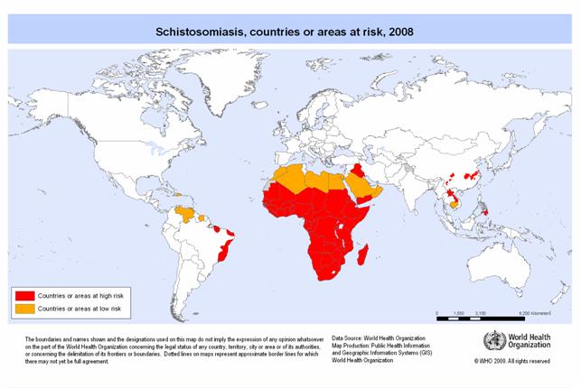 Về mặt dịch tễ học, bệnh sán máng được phát hiện thấy ở một số nơi trên thế giới: