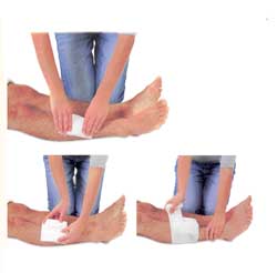 - Dùng cuộn băng hay miếng vải dài cuộn chặt hai miếng ván hay hai thanh tre vào tay hoặc chân bị gãy suốt từ đầu này đến đầu kia của hai miếng ván hay hai thanh tre.