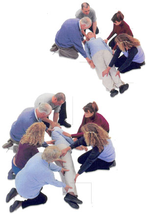 Trường hợp bị gãy chân, có thể dùng cuốn băng để băng chặt hai chân lại với nhau. Trường hợp gãy cẳng tay, sau khi đã cố định có thể dùng một miếng vải rộng hay khăn choàng quàng vào vai để treo tay bị gãy lên.