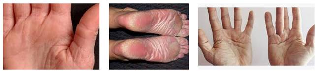 Marlene Reid, DPM, chuyên gia về chân tại Naperville, Illinois (Mỹ) cho biết, các vấn đề về tuyến giáp thường gây ra chứng khô da trầm trọng, đặc biệt là khi có vết nứt trên bàn chân, da bong chóc vảy mà dùng kem dưỡng ẩm vẫn vô dụng. Bàn chân chóc vảy, móng chân giòn là dấu hiệu suy giáp. Nếu tình trạng này kéo dài nhiều ngày, tốt nhất bạn nên đi khám để xem xét tuyến giáp có vấn đề gì. Bên cạnh đó, móng chân giòn cũng là dấu hiệu tuyến giáp có vấn đề.
