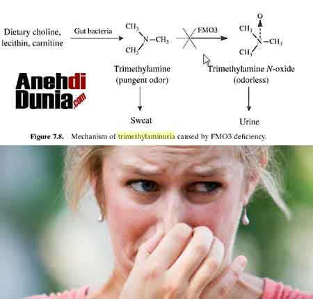 Hội chứng Trimethylaminuria là một căn bệnh về trao đổi chất khiến cho cơ thể người bệnh mất khả năng tách hoàn toàn chất trimethylamine có trong thực phẩm. Chất trimethylamine này lại hình thành và giải phóng qua mồ hôi, nước tiểu và hơi thở của người bệnh, khiến họ toát ra mùi tanh nồng nặc của cá. Y học ghi nhận, tại Anh chỉ có một vài người mắc phải căn bệnh lạ này. Phụ nữ có nhiều khả năng phát triển bệnh nặng hơn nam giới bởi hormon sinh dục nữ làm các triệu chứng trở nên trầm trọng hơn. Căn bệnh này còn có thể khiến cho người bệnh bị trầm cảm và các vấn đề tâm lý khác.