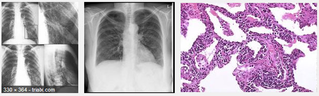 -Bức xạ. Một số người nhận được trị liệu bức xạ đối với bệnh ung thư phổi hoặc ung thư vú có dấu hiệu tổn thương phổi lâu sau khi kết thúc điều trị phóng xạ. Các mức độ nghiêm trọng của thiệt hại có thể phụ thuộc vào bao nhiêu của phổi tiếp xúc với bức xạ, tổng số nhận được bức xạ, hóa trị liệu cũng được sử dụng và cho dù có bệnh phổi.