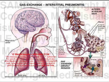 Trong bệnh phổi kẽ, các bức thành của các túi khí có thể bị viêm, và các mô (interstitium) đường và hỗ trợ các túi trở nên ngày càng dày lên và sẹo. Thông thường, các túi khí đàn hồi cao, mở rộng và ký kết hợp đồng như bong bóng nhỏ với từng hơi thở. Nhưng sẹo (xơ hóa) gây ra các mô, kẽ mỏng trở nên cứng và dày hơn, làm cho túi không khí ít linh hoạt hơn. Thay vì mềm mại và đàn hồi, túi khí sẹo có kết cấu của một miếng bọt biển cứng, mà làm cho khó thở và khó khăn hơn cho oxy vào máu qua những bức thành dày.