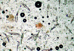 +Đặt lam kính dưới kính hiển vi và kiểm tra từng giọt một. Quan sát thật cận thận và không sử dụng vật kính quá lớn khi bắt đầu, dùng độ phóng đại x 40 đến x 60 lần là đủ. Tăng độ phóng đại lên sau khi đã tìm thấy chúng và muốn nhìn rõ thêm chi tiết;