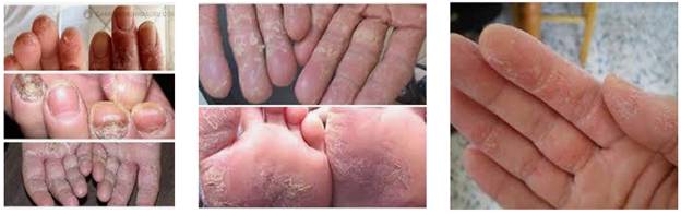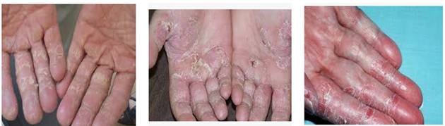 Tùy từng ca bệnh có thể chỉ gặp ở bàn tay hoặc bàn chân nhưng cũng có thể biểu hiện cùng lúc ở cả hai nơi. Bệnh tuy không nguy hại đến sức khỏe nhưng lại gây nhiều phiền toái cho bệnh nhân trong sinh hoạt. Nếu được điều trị và chăm sóc tốt, bệnh sẽ dần dần ổn định. Tuy nhiên, nếu không tránh được các yếu tố nguy cơ, bệnh sẽ nhanh chóng tái phát, bong tróc da ngày càng nặng.