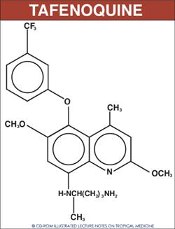 Tương tự primaquine, thuốc tafenoquine có thể gây nên tan máu trên các cá nhân thiếu men G6PD. Ngoài ra, thời gian bán hủy của thuốc Tafenoquine đề nghị dùng cẩn trọng để bảo đảm rằng các cá nhân thiếu men G6PD nghiêm trọng không dùng thuốc này. Liều dùng Tafenoquine chưa được xác lập, nhưng điều đối với Plasmodium vivax, dùng liều 800 mg trong 3 ngày đã được sử dụng. Để biết thêm thông tin chi tiết, Một số tài liệu dưới đây bạn có thể tham khảo: