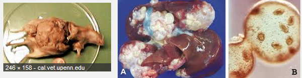 - Các nang hydatid cysts phát triển trong gan, phổi, não và tim;