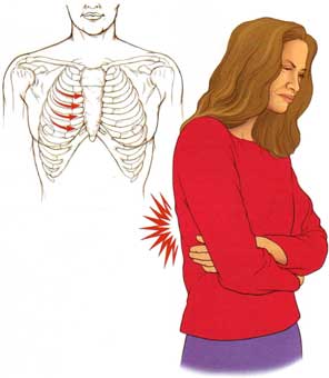 Căn bệnh này thường được dân gian mô tả bằng các từ "đau ngực", "tức ngực", "đau mạng sườn". Đây là những cơn đau kéo dài hoặc xuất hiện từng đợt dọc theo dây thần kinh liên sườn. Người bệnh thường chỉ đau ở một bên, trái hoặc phải; đau từ trước ngực (xương ức) lan theo "mạng sườn" ra phía sau ở cạnh cột sống. Có thể có điểm đau và hiện tượng tăng cảm giác ở vùng đau khi thầy thuốc khám thăm dò...Đau dây thần kinh liên sườn thường xuất hiện khi có các bệnh nhiễm khuẩn (cúm, lao, thấp khớp), các bệnh bên trong (phổi, màng phổi, tim, gan) hay tổn thương ở đốt sống lưng (lao, ung thư nguyên phát hay di căn, thoái hóa, u tủy).