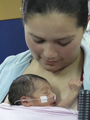 Là một người mẹ, ai cũng muốn cục cưng của mình chào đời khi đã đủ ngày đủ tháng để có đủ sức khỏe thích ứng với cuộc sống mới. Nhưng, chẳng phải khi nào trời cũng chiều lòng người bởi có rất nhiều lý do khiến các bà mẹ buộc phải sinh con sớm hơn dự kiến. Trong những trường hợp như thế, sức khỏe của em bé thực sự yếu ớt và thiếu cân trầm trọng. Trước đây, các bác sỹ thường cách ly với mẹ đồng thời cho bé vào lồng kính để tiếp tục nuôi dưỡng. Bây giờ, có một phương pháp khác tốt hơn cho cả mẹ và bé: mẹ và gia đình sẽ nuôi bé theo kiểu kangaroo, thường được áp dụng cho bé nặng dưới 2kg.