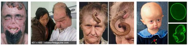 -Progenia (tình trạng lão nhi): Bệnh progeria còn gọi là chứng bệnh lão hóa hay lão nhi, già trước tuổi. Đây là căn bệnh hiếm gặp, theo thống kê, trên thế giới hiện chỉ có khoảng 80 trường hợp mắc.