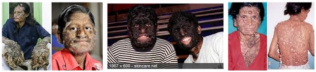 -Hội chứng người cây (Epidermodysplasia Verruciformis): Nguyên nhân của bệnh là một virus thuộc họ HPV (Human Papillomavirus) gây ra. Tổn thương là các nốt, các mảnh chai sần như vỏ cây mọc trên mặt hoặc các đầu chi. Bệnh không gây tử vong nhưng ảnh hưởng rất nhiều tới thẩm mỹ và cản trở các hoạt động hàng ngày của bệnh nhân. Hiện chưa có điều trị đặc hiệu ngoài việc cắt bỏ các “nhánh cây” khi chúng mọc quá dài và nhanh.