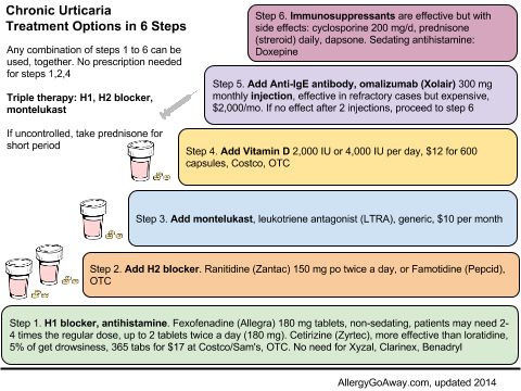 Dưới đây là phác đồ điều trị mày đay mạn tính theo các bước cụ thể theo Các chuyên gia dị ứng khuyến cáo: