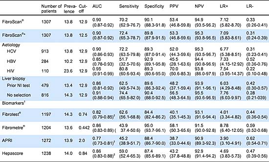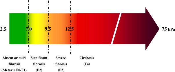 Kiểm tra sức khỏe với thiết bị FibroScan® còn được gọi là elastography thoáng qua, đây là một kỹ thuật dùng để đánh giá độ cứng của gan (đo bằng đơn vị kPa liên quan đến xơ hóa nhu mô gan) mà không cần thiết bị xâm nhập. Kết quả là trung gian nó cho thấy tình trạng của gan và cho phép thầy thuốc chẩn đoán và giám sát tiến triển của bệnh sau khi điều trị và các yếu tố liên quan. Kết quả xét nghiệm giúp tiên đoán các biến chứng khác nhau cũng như giám sát và đánh giá tổn thương gây ra bởi tình trạng khác nhau như xơ gan chẳng hạn. Xét nghiệm FibroScan® rất dễ thực hiện, không đau, nhanh và cho kết quả sớm. Trong suốt quá trình đo fibroscan bạn sẽ cảm thấy rung nhẹ trên da nơi mà đầu dò đang đi đến. Đây là thiết bị duy nhất trên thế giới hiện nay giúp tầm soát và xác định mức độ xơ hóa trong gan (liver fibrosis) không gây đau, hoàn toàn không ảnh hưởng đến sức khỏe. Theo thống kê mới nhất của Hội Gan Mỹ (American Liver Foundation), xơ gan là nguyên nhân gây tử vong đứng hàng thứ 12 trên thế giới. Xơ gan thường gặp ở những nhóm bệnh nhân bị viêm gan mãn tính (viêm gan B và C…), rối loạn mỡ máu, tiểu đường... Những người uống nhiều bia rượu hay trong gia đình có người thân bị bệnh gan cũng có nguy cơ bị bệnh này. Điều đáng ngại là giai đọan đầu bệnh không có triệu chứng rõ ràng nhưng nếu không điều trị kịp thời bệnh tiến triển nặng thành ung thư gan, suy gan… gây ra các biến chứng nguy hiểm và tử vong. Tầm soát và chẩn đoán xơ gan bằng Fibroscan được thực hiện tương tự như làm siêu âm, chi phí thực hiện Fibroscan tại bệnh viện FV là 500.000 VNĐ/ca. Chúng tôi cũng đã chuyển nhiều bệnh nhân được xác định viêm gan virus B hay C mạn tính, có nguy cơ xơ gan đến Trung tâm chẩn đoán y khoa Hòa Hảo để làm các xét nghiệm như thế này và kết quả có độ nhạy và độ đặc hiệu cao như các báo cáo trên y văn đã trình bày (bảng sau).