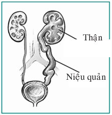 Thận và niệu quản bị giãn gây ứ nước. | Sỏi niệu quản - một nguyên nhân gây ứ nước thận. |