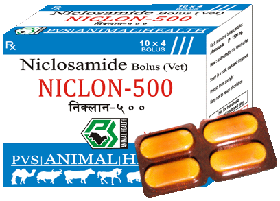 Thuốc có chỉ định như sau: Niclosamid được dùng khi bị nhiễm sán bò, sán cá và sán lợn(nên dùng praziquantel khibị nhiễm ấu trùng sán lợn). Dùng điều trị sán dây ruột khi không có praziquantel, nhưng cũng có chống chỉ định là trường hợp nhiễm sán dây bò, sán dải cá, sán dây lợn: uống liều duy nhất vào sau bữa ăn sáng, nên nhai kỹ viên thuốc.