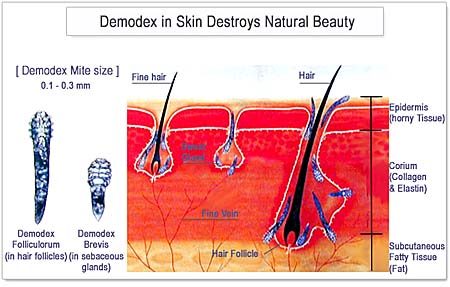 Demodex là một loại ký sinh trùng thuộc ngànhđộng vật chân đốt nhỏ, lớp nhện, bộ ve, họ demodicidae, giống Demodex với khoảng 65 loài khác nhau. Về hình thái học chúng gồm đầu, cổ, thân mình và đuôi. Demodex ký sinh phần lớn ở nang lông những vùng da mỡ, đặc biệt là ở trán, gò má, hai bên cánh mũi, lông mi, lông mày, lông nách, thậm chí cắc vùng kín trên cơ thể bạn.