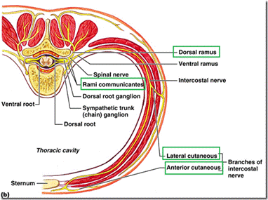 Đau do nhiễm khuẩn hay gặp nhất là đau dây thần kinh liên sườn do zona, thường tiến triển qua 2 giai đoạn, giai đoạn cấp khởi phát bằng đau rát một mảng sườn, sau một vài ngày thấy đỏ da, xuất hiện các mụn nước với xu hướng lan rộng theo phạm vi phân bố của dây thần kinh liên sườn. Bệnh nhân thấy ngứa và đau rát như bỏng, rất khó chịu, bệnh nhân không dám để cho vùng tổn thương tiếp xúc với quần áo hay sờ mó vào da. Có thể có sốt, mệt mỏi, khoảng một tuần tổn thương khô, bong vảy, để lại sẹo. Giai đoạn di chứng, bệnh nhân thấy đau rát ở vùng tổn thương một thời gian, có khi kéo dài hàng tháng, nhất là ở người cao tuổi. Đau dây thần kinh liên sườn tiên phát, có thể do lạnh hoặc do vận động sai tư thế hoặc quá tầm. Bệnh nhân thấy đau ở vùng cạnh sống hoặc vùng liên sống - bả vai, có thể đau một hoặc hai bên, đau lan theo khoang liên sườn ra phía trước, đau âm ỉ cả ngày và đêm, đau khi hít thở sâu, thay đổi tư thế, ho, hắt hơi. Ấn vùng cạnh sống tương ứng với khe gian đốt bệnh nhân thấy đau tức, đôi khi lan theo đường đi của dây thần kinh liên sườn. Da vùng đau không có biểu hiện tổn thương. Đau do các bệnh như đái tháo đường, nhiễm độc, viêm đa dây thần kinh. Bệnh nhân có triệu chứng của các bệnh này trước, sau đó mới xuất hiện đau thần kinh liên sườn.
