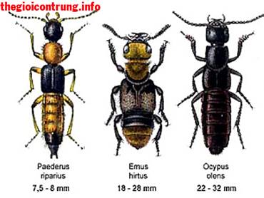 Làm thế nào phân biệt kiến ba khoangvới các loại kiến thường? Kiến ba khoang có tên khoa học là Paederus fuscipes, thuộc họ Staphilinidae (cánh cụt), bộ Colleoptera (cánh cứng), Lớp insecta (côn trùng), ngành động vật. Về mặt hình thái học của loại kiến ba khoang rất đặc biệt như thân mình thon, dài như hạt thóc (dài 1-1,2cm, ngang 2-3mm), nhiều màu sắc khác nhau, nhìn giống con kiến; do đó, người ta hay gọi với nhiều tên gọi khác nhau như kiến hoang, kiến kim, kiến lác, kiến gạo, cằm cặp, kiến nhốt, kiến cong, ...