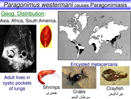 . Nhiễm trùng ở người với P. westermani xảy ra thông qua khâu ăn uống các thịt cua hoặc tôm nấu chưa chín hoặc chỉ nhúng rựou nên vẫn còn tồn tại metacercariae của ký sinh trùng