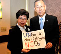 Đại hội đồng Liên hợp quốc (United Nations General Assembly) công bố một báo cáo về tiến bộ đạt được trong việc thực hiện các cam kết của người đứng đầu Nhà nước và Chính phủ tại Hội nghị cấp cao Liên hợp quốc về NCDs vào tháng 9 năm 2011. Các nhà lãnh đạo thế giới đã đồng ý là gánh nặng toàn cầu và mối đe dọa của NCDs vào tháng 9 năm 2011 tạo thành một trong những thách thức lớn cho sự phát triển trong thế kỷ 21 và các công việc hành động như bình thường không còn là một lựa chọn. Các nước cam kết hành động bằng cách thiết lập mục tiêu và xây dựng kế hoạch quốc gia và thực hiện các biện pháp can thiệp đã được chứng minh để phòng chống và giám sát NCDs.