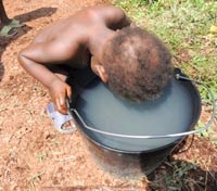 Một đứa trẻ uống nước từ một cái thùng tại trung tâm thanh niên công giáo Don Bosco ở Bangui, nơi hàng ngàn người di tản, trong đó có hàng trăm trẻ em sống theo tính toán của UNICEF |
