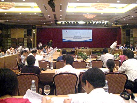 PGS.TS. Phạm Lê Tuấn-Vụ trưởng Vụ KHTC-Bộ y tế và Dr.George Slama chủ trì phiên thảo luận toàn thể của hội nghị |