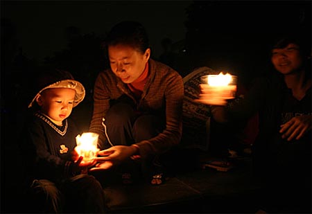 Bằng hành động hướng ứng Giờ Trái Đất, người dân cả nước đã góp phần tiết kiệm được 450 triệu đồng trong một tiếng đồng hồ tối qua. Ảnh: Nguyễn Hưng |