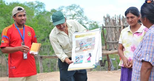 Nhân viên y tế cộng đồng ở Santa Cruz, Bolivia đang tuyên truyền cư dân địa phương cách làm giảm sự lây lan của bệnh Chagas (WHO/TDR/Fernando G. Revilla)