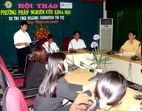 TS.Hồ Văn Hoàng-Phó Viện trưởng đang trình bày các nội dung chính trong Hội thảo phương pháp nghiên cứu khóa học |