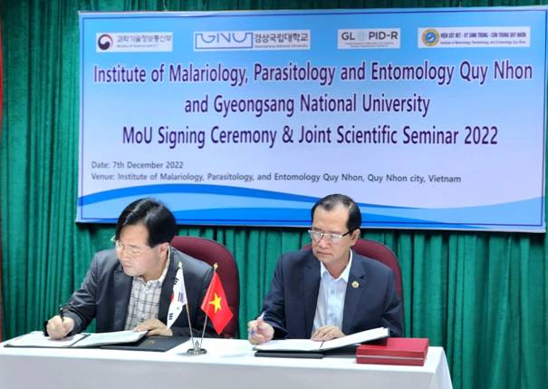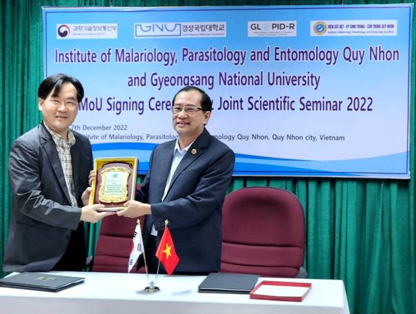 Chiều ngày 07/12/2022, Viện Sốt rét - Ký sinh trùng - Côn trùng Quy Nhơn (IMPE-QN) và Trung tâm Phát triển Nguồn nhân lực ngành Công nghệ Y sinh Brain Korea 21 (BK21FOUR, Trường Đại học Y - Đại học Quốc gia Gyeongsang (GNU), Hàn Quốc ký kết Biên bản ghi nhớ (MoU) trong lĩnh vực hợp tác nghiên cứu về các Bệnh Truyền nhiễm nhiệt đới, trong đó có bệnh sốt rét và các bệnh ký sinh trùng ở Việt Nam.