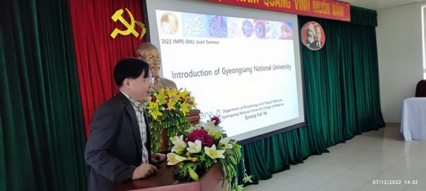 Về phía Đại học Y-Đại học Quốc gia Gyeongsang, GS.TS.Byoung-Kuk Nađã giới thiệu quá trình hình thành và phát triển của Đại học Quốc gia Gyeongsang(GNU) từ năm 1948 đến nay với mục tiêu và kết quả đạt được rất ấn tượng qua các giai đoạn. Đại học Gyeongsang là Đại học Quốc gia trọng điểm trực thuộc Bộ Giáo dục của Hàn Quốc và thuộc top 10 Đại học Quốc gia hàng đầu. Trong hơn 70 năm kể từ khi thành lập, ĐH Quốc gia Gyeongsang đã đào tạo ra nhiều thế hệ sinh viên ưu tú về khoa học và kinh tế phục vụ cho cộng đồng và sự thịnh vượng quốc gia. Trường được xem là nơi khởi điểm cho nền công nghiệp Hàn Quốc và là Đại học tiêu biểu cho khu vực Gyeong Nam của Hàn Quốc với hơn 760 giáo sư cùng với hơn 400 nhân viên, khoảng 25.000 sinh viên với cấu trúc 3 Campus Gajwa, Campus Chilam, Campus Tongyeong và rộng khoảng 1.678km2 bao gồm nhiều hạng mục, cơ sở hạ tầng và trang thiết bị hiện đại phục vụ cho việc đào tạo và sinh hoạt cho học sinh, sinh viên.