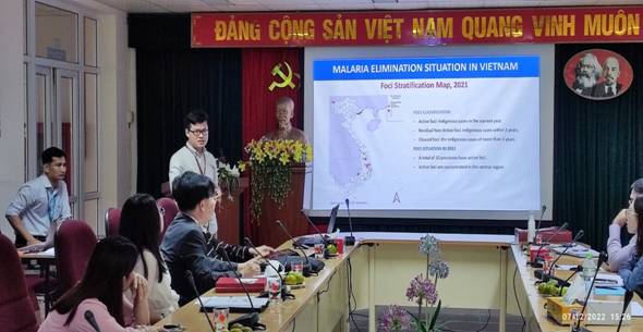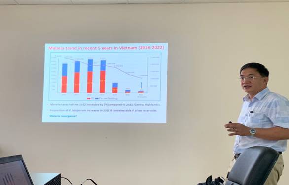 BS. Nguyễn Công Trung Dũng báo cáo về tình hình loại trừ sốt rét và xây dựng năng lực giám sát