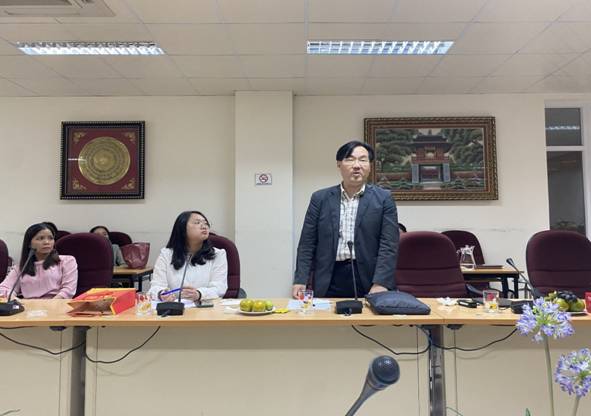 GS.TS. Byoung-Kuk Na trao đổi chuyên môn trong phần thảo luận về các báo cáo khoa học