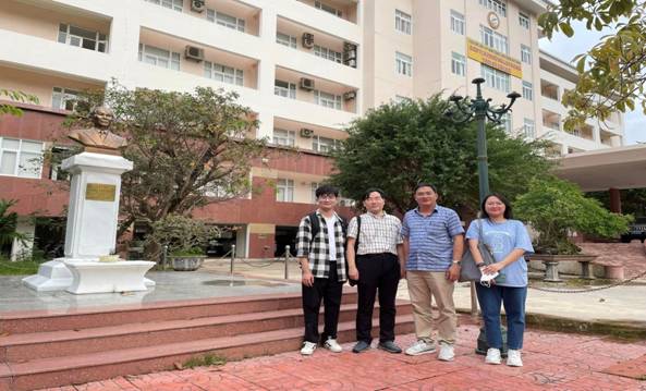 GS. Byoung-Kuk Na vàcác thành viên của GNU tham quan cơ sở và các labo chuyên môn, chụp ảnh lưu niệm dưới chân Tượng GS.BS.Đặng Văn Ngữ
