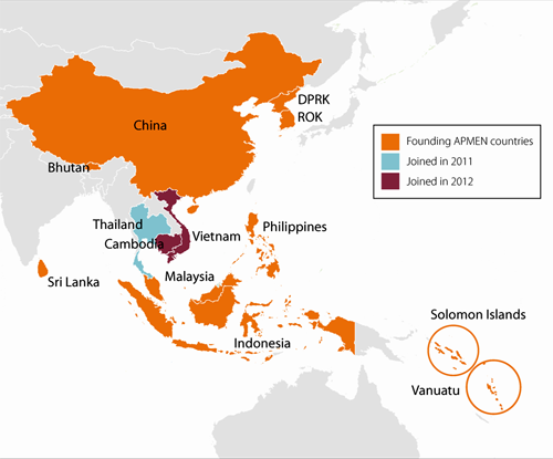 APMEN là một mạng lưới được điều hành bởi các nước, tập trung vào việc đưa ra và phổ biến những thông tin có căn cứ rõ ràng về công cuộc giảm trừ sốt rét cũng như những thành quả trong việc loại trừ bệnh sốt rét tại khu vực Châu Á Thái Bình Dương. APMEN được thành lập vào năm 2009 nhằm đáp ứng lời kêu gọi hành động của các nước trong khu vực về loại trừ bệnh sốt rét. Với Việt Nam là thành viên mới nhất, APMEN kết nối 12 nước khác trong mạng lưới là Bhutan, Campuchia, Trung Quốc, Cộng Hòa Dân chủ Nhân dân Triều Tiên, Indonesia, Malaysia, Philipin, Hàn Quốc, Quần đảo Solomon, Sri Lanka, Thái Lan và Vanuatu, với môt nỗ lực học hỏi kinh nghiệm về các biện pháp phòng chống sốt rét của chương trình, áp dụng các kết quả nghiên cứu vào thực tiễn và xem xét cách thực hiện chương trình một cách tối ưu. Các nước thành viên của APMEN làm việc cùng nhau để duy trì những thành quả đã đạt được trong công tác phòng chống sốt rét và đảm bảo sự giúp đỡ về tài chính và chính trị đối với công cuộc loai trừ bệnh sốt rét trong khu vực. Mọi thông tin về tổ chức APMEN có thể xem tại www.apmen.org.