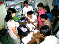+ Nhóm I: Cán bộ y tế thôn bản được quan sát các kỹ năng hỏi các thông tin cần thiết khi gặp một người biểu hiện sốt, cách ghi chép vào phiếu xét nghiệm KSRSR, cách cặp nhiệt độ, cách lấy lam máu, thử test chẩn đoán nhanh, cách gửi lam lên Trạm y tế xã…Những đối tượng nghi ngờ là bệnh nhân sốt rét thì loại thuốc nào được sử dụng với liều đầu tiên (First Dosage) trước khi gửi lên tuyến trên.