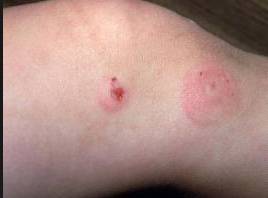 Một giai đoạn ăn máu của muỗi thường không thể phát hiện được; vết đốt chỉ trở nên rõ ràng vì phản ứng miễn dịch thể hiện. Khi muỗi đốt vào một người, muỗi cái sẽ tiêm nước bọt và chất chống đông máu. Đối với bất kỳ cá nhân nào đươc cho, với vết đốt đầu tiên không có phản ứng nhưng các vết đốt sau đó thì phản ứng hệ thống miễn dịch hình thành kháng thể và vết đốt trở nên sưng tấy, viêm và ngứa trong vòng 24 giờ. Đó là phản ứng bình thường mà chúng ta hay gặp trên các trẻ em nhỏ.