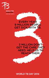 Năm 2014, khẩu hiệu cho Ngày thế giới phòng chống lao (World Tuberculosis Day) là "Tiếp cận tới 3 triệu ca bệnh lao" (Reach the 3 million). Bệnh lao là bệnh có thể chữa được nhưng những nỗ lực hiện tại để phát hiện, điều trị và chữa khỏi tất cả những người bị bệnh lao là không đầy đủ. Trong số 9 triệu người bị bệnh lao mỗi năm thì một phần ba trong số đó bị"bỏ sót” (missed) bởi hệ thống y tế. Nhiều người trong số 3 triệu người sống trong các cộng đồng nghèo nhất và dễ bị tổn thương nhất trên thế giới hoặc trong các quần thể bị thiệt thòi như người lao động nhập cư (migrant workers), người tỵ nạn và tỵ nạn quốc tế (refugees and internally displaced persons), tù nhân (prisoners), người dân bản địa (indigenous peoples), dân tộc thiểu số (ethnic minorities) và người sử dụng ma túy (drug users). Tổ chức Y tế thế giới (WHO) và các đối tác phòng chống lao (stop TB partnership) có trụ sở tại WHO đang cùng nhau thúc đẩy ngày phòng chống bệnh lao trên thế giới nhằm cung cấp cơ hội cho những người và các cộng đồng bị ảnh hưởng nơi họ sinh sống, các tổ chức xã hội dân sự, các nhà cung cấp chăm sóc y tế và các đối tác quốc tế nhằm kêu gọi hành động hơn nữa để đạt được mục tiêu điều trị cho 3 triệu người. Tất cả các đối tác có thể giúp đưa ra các phương pháp tiếp cận sáng tạo để đảm bảo rằng tất cả mọi người bị bệnh lao có quyền tiếp cận với chẩn đoán, điều trị và chữa khỏi bệnh lao.