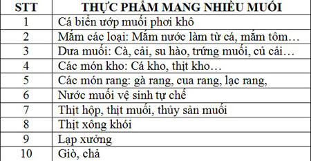 | Những thực phẩm mang nhiều muối ở Việt Nam |