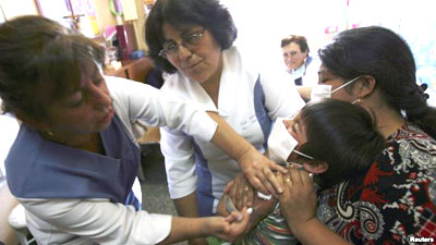 Một y tá chủng ngừa cho một đứa trẻ chống lại bệnh viêm gan để phòng ngừa bệnh ở Constitucion, Chile. |