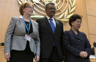 Tân Tổng Giám đốc WHO ra mắt cùng Nguyên Tổng giám đốc WHO và Chủ tịch WHA