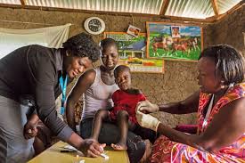 Hình ảnh lấy máu thử chẩn đoán sốt rét bằng test chẩn đoán nhanh tại Mali